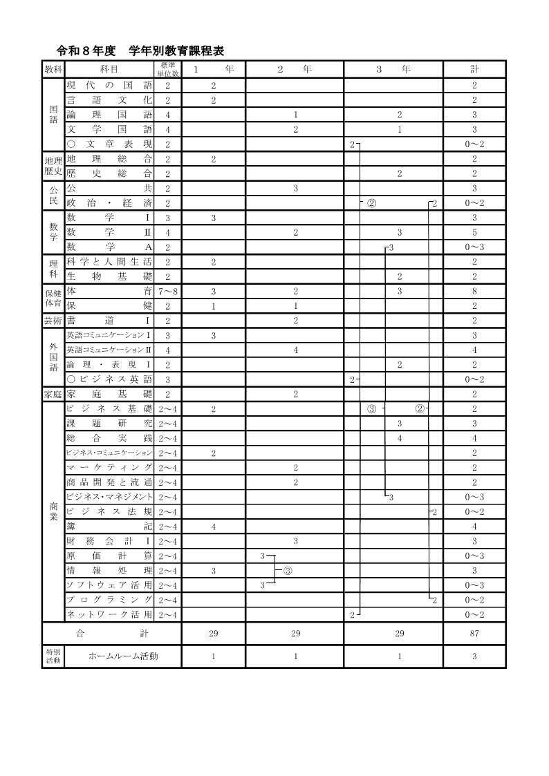 令和8年度(2026年度)学年別教育課程